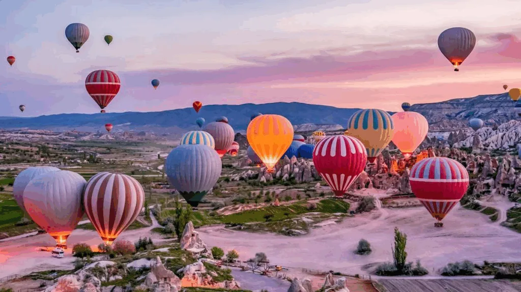 | Cappadocia | Turki | Balon udara, formasi batu unik | Balon udara, gua hotel |